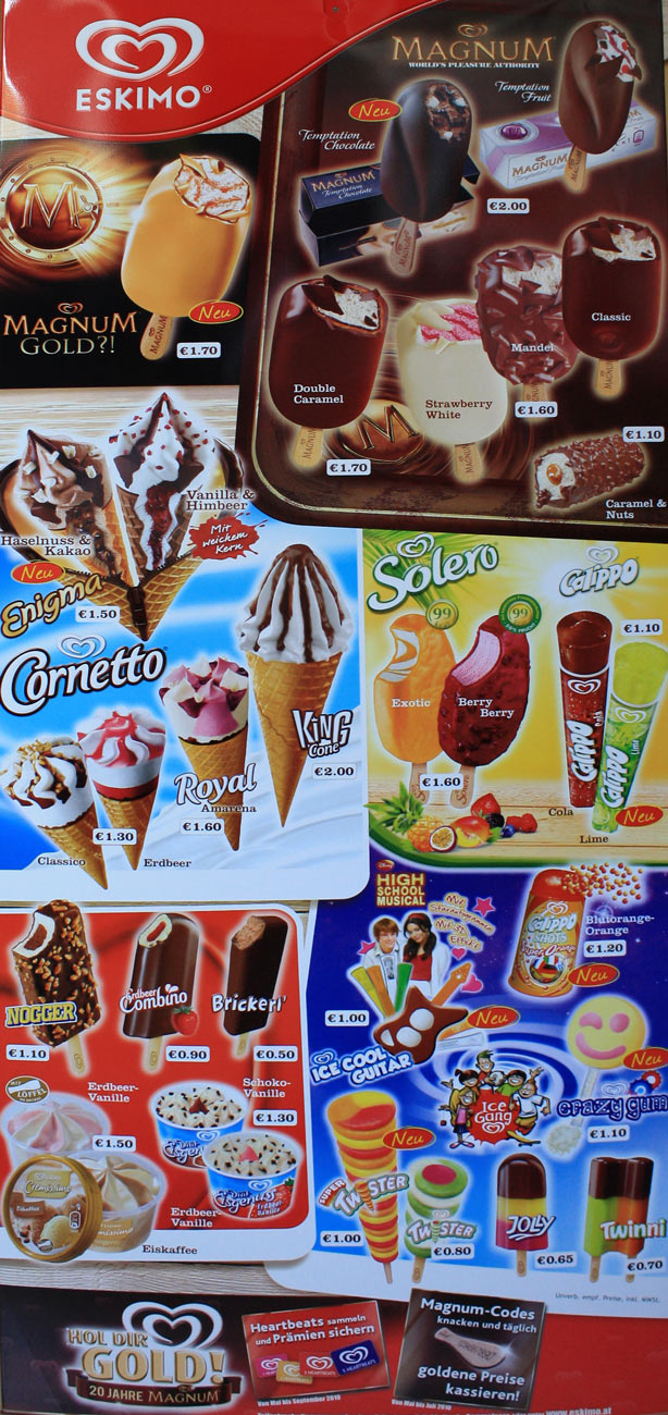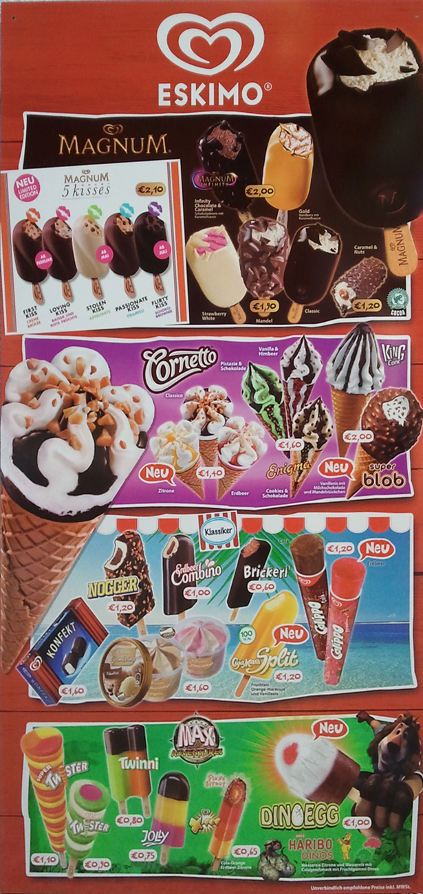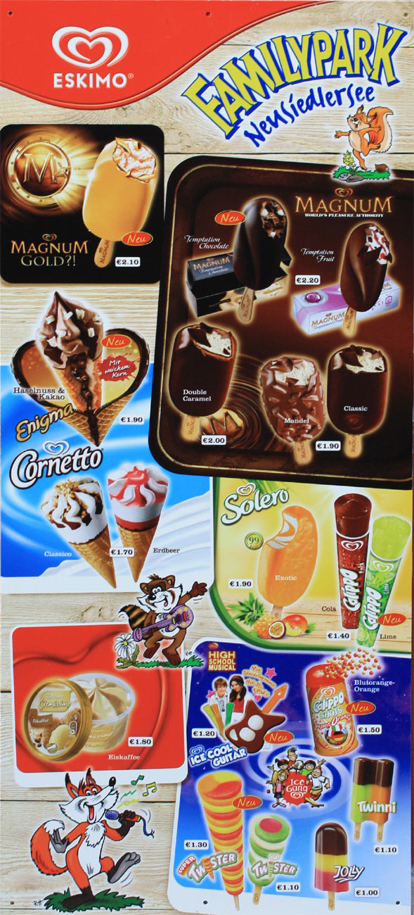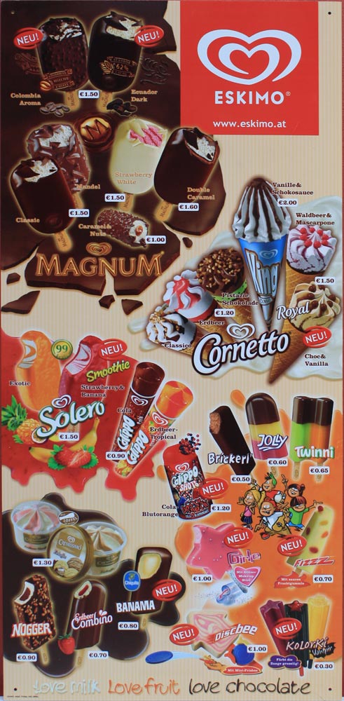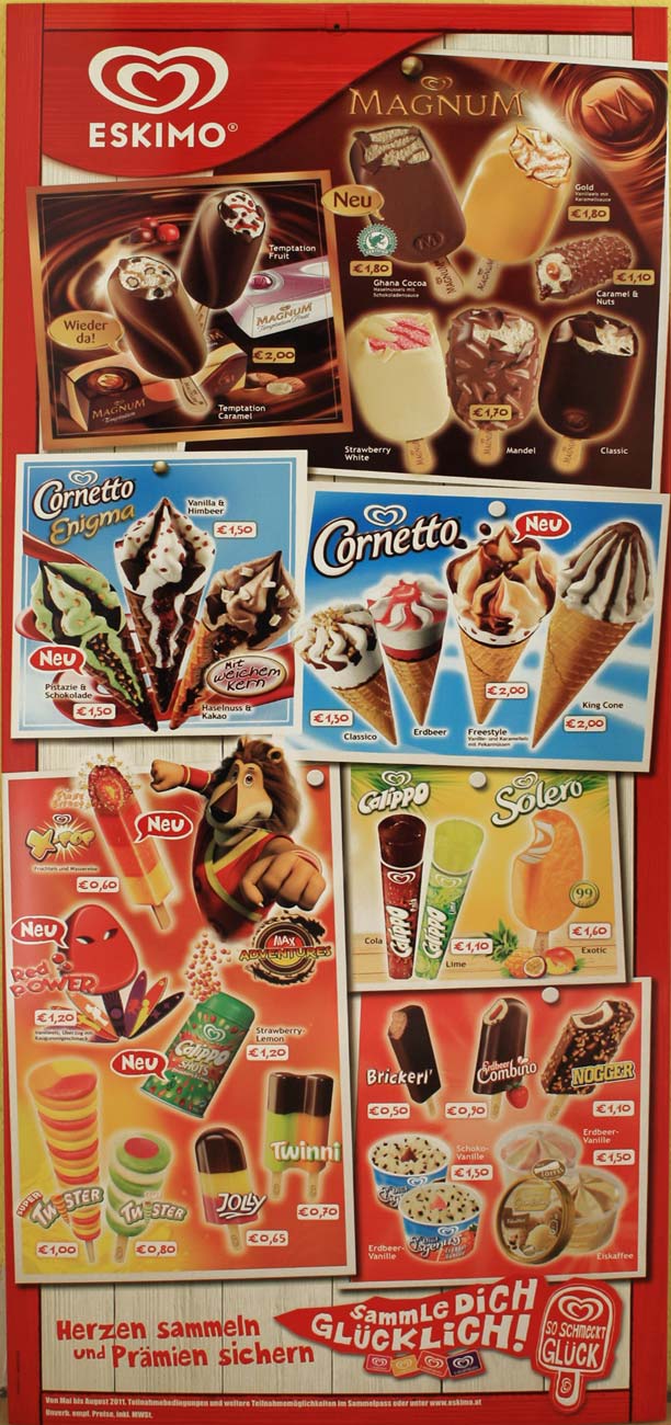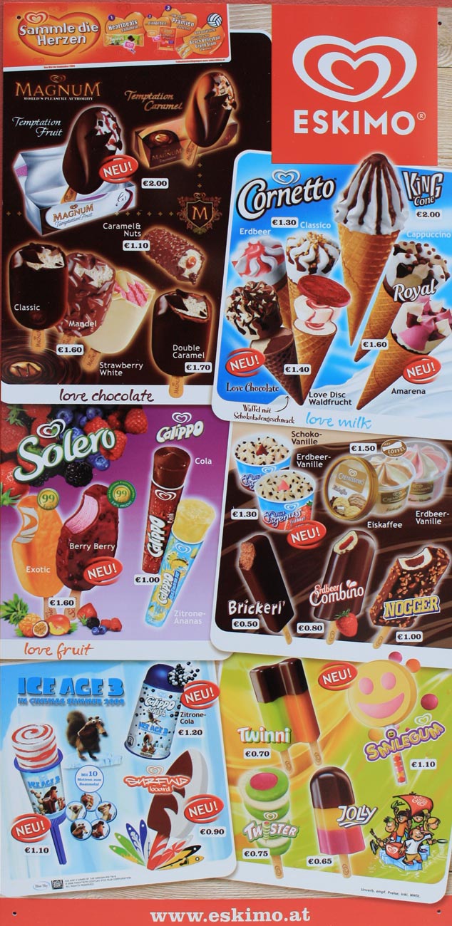 Eskimo Eis aus Österreich mit Abbildungen. Eiskarten