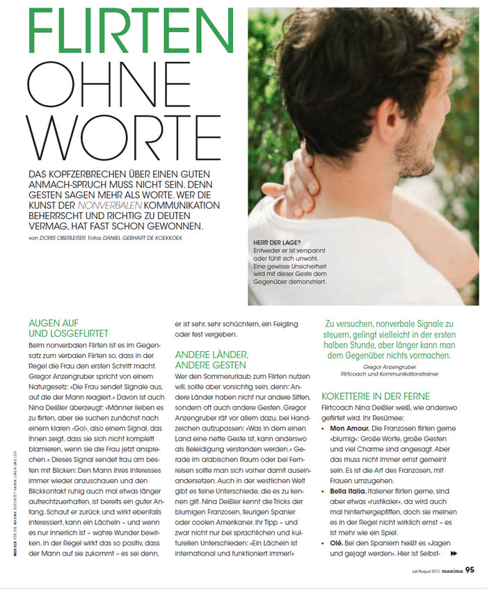 "Spass beim Flirten..." Der Flirtexperte zum Thema in der Zeitschrift "Maxima" |